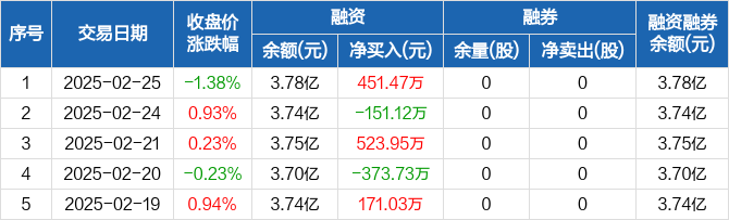 天原股份:融资净买入451.47万元,融资余额3.78亿元(02-25)