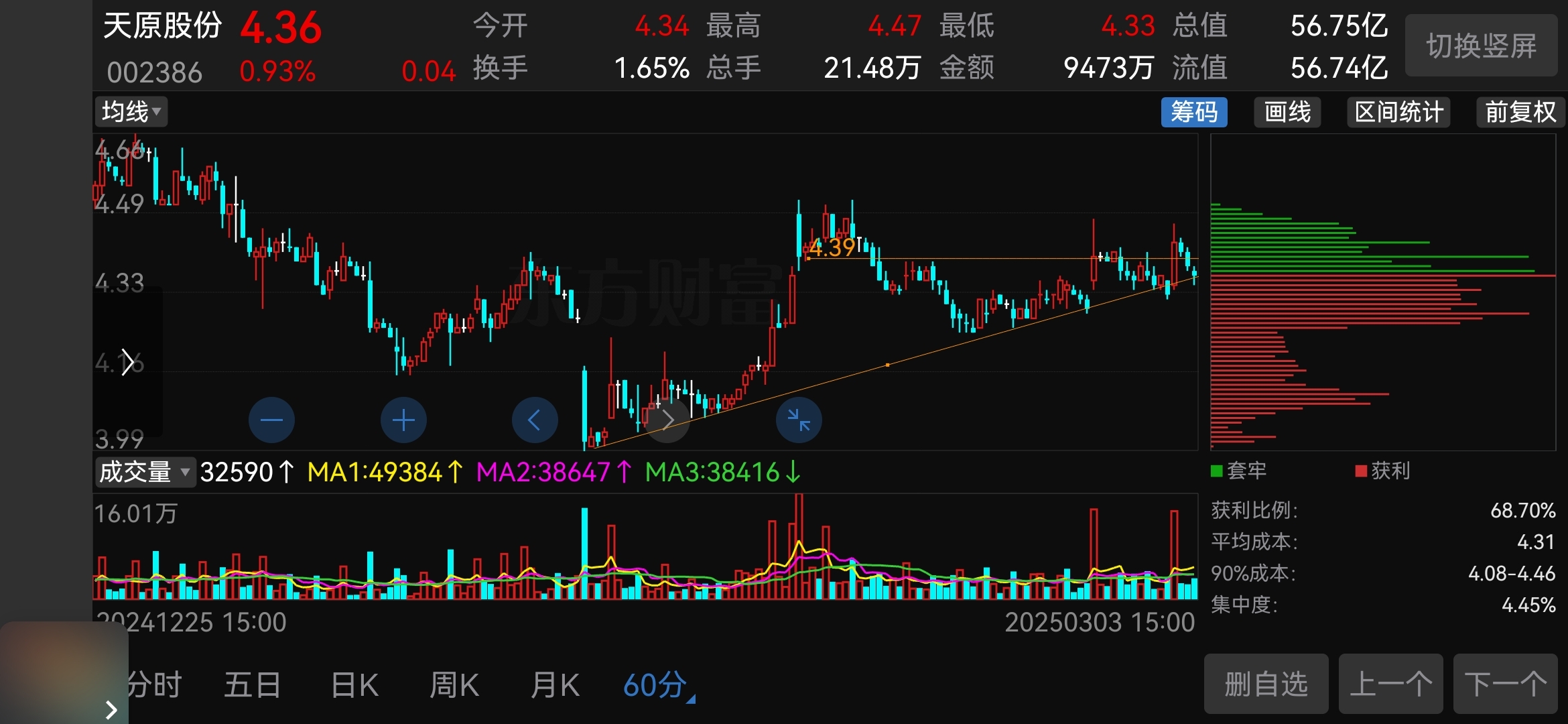 守住了上涨趋势线,但受压60天线,不要紧,明天继续冲击60天线。