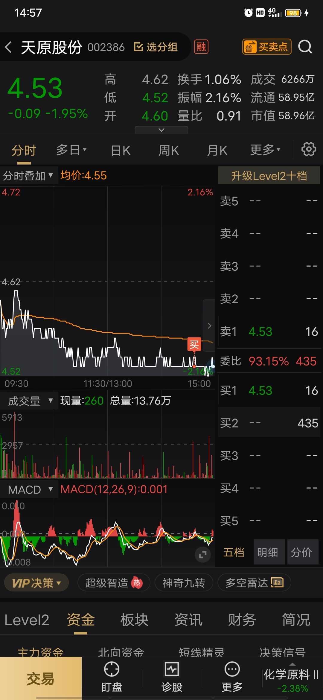 $天原股份(SZ002386)$ 大股东增持快完毕,今天回调了我也建仓1/3买入,明天如果再跌继续加仓1/3,留1/3下周应变,看能跟着吃点肉汤不。