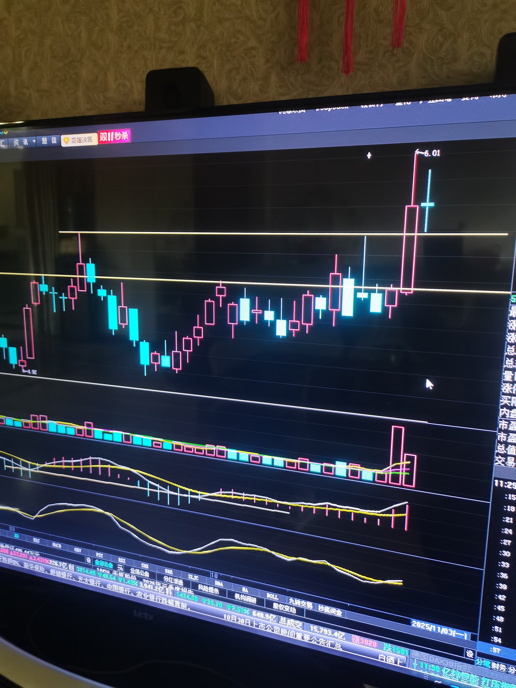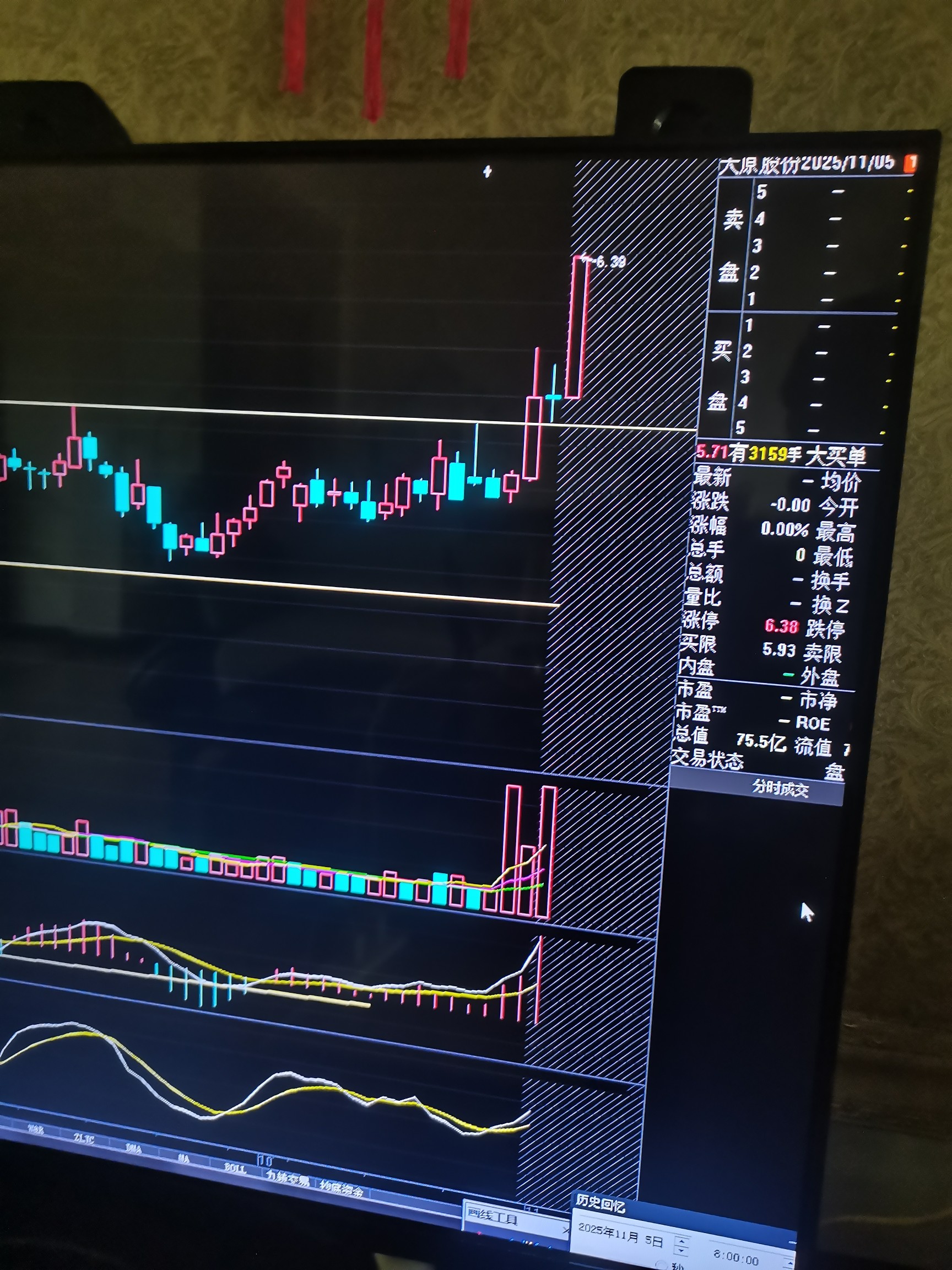 5.69的压力转为支撑。今天最低价5.7,说明支撑有效。KD,MACD,均价线,