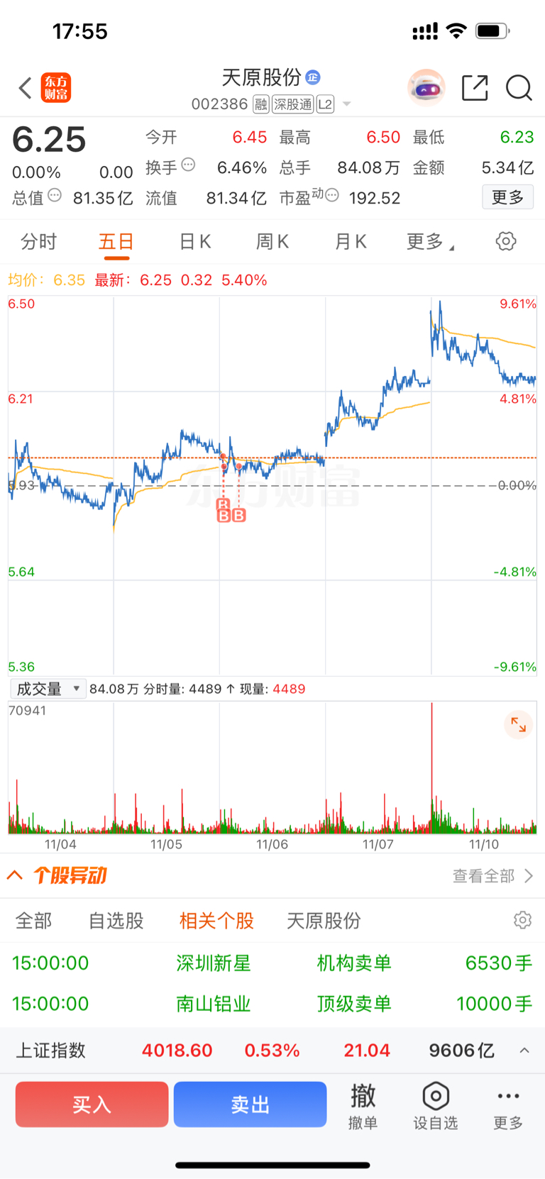 $天原股份(SZ002386)$ 只要符合我的逻辑认知内,我不管你涨跌,一个字:买,二个字买入