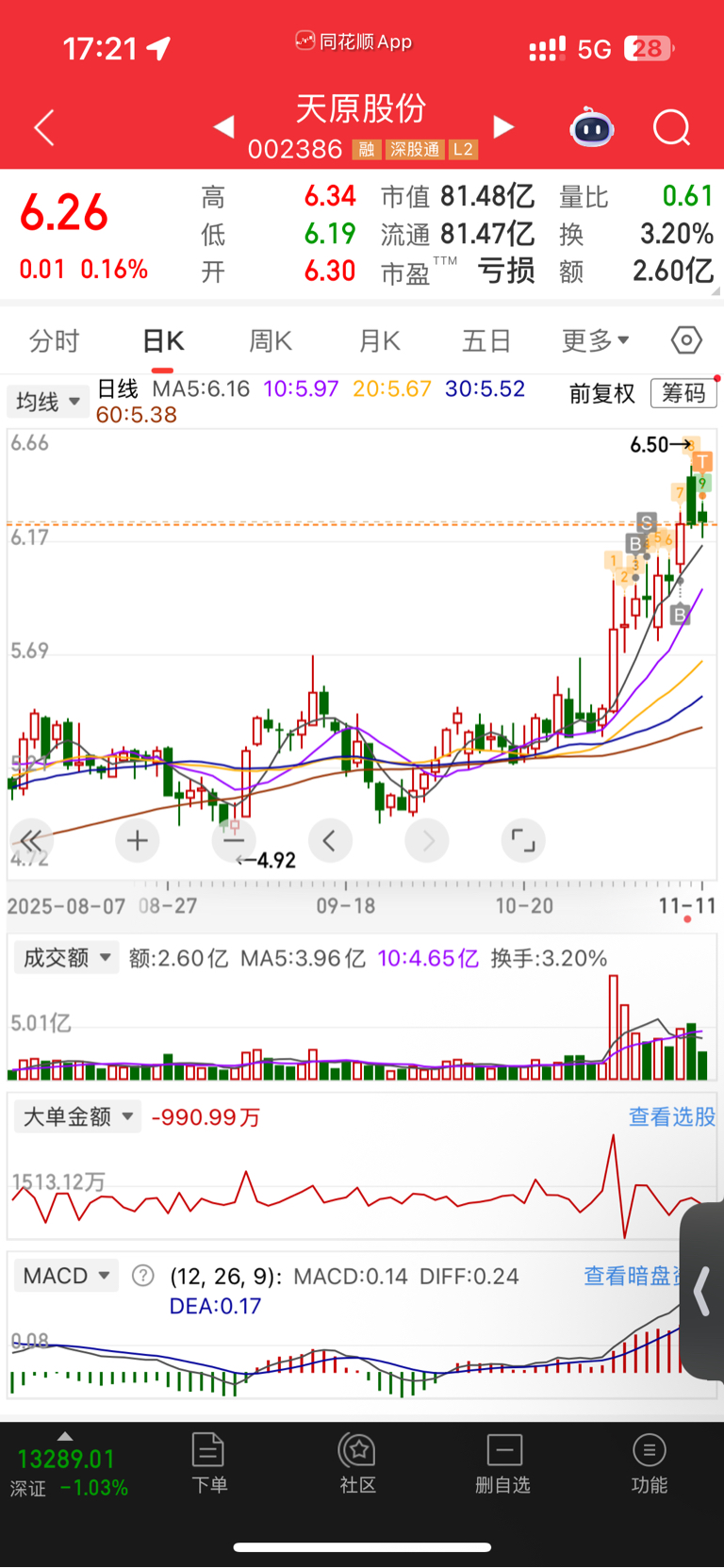 $天原股份(SZ002386)$ 大家不要慌,根据我本月卖飞涨停的总结经验,但凡我在天原,你们休想涨停,除非股吧每人V我50我才会走