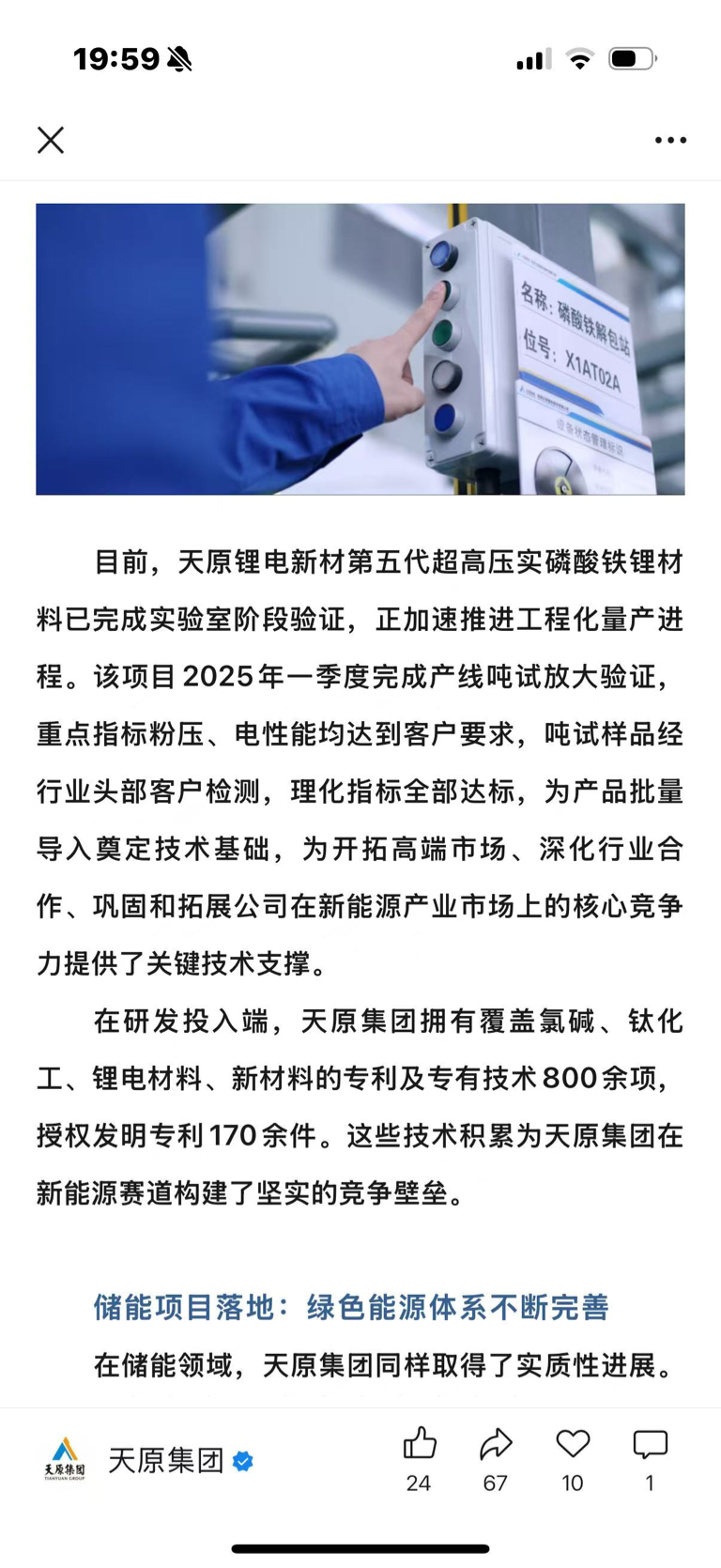 静待天原股份第五代高压实密度磷酸铁锂产品风格口