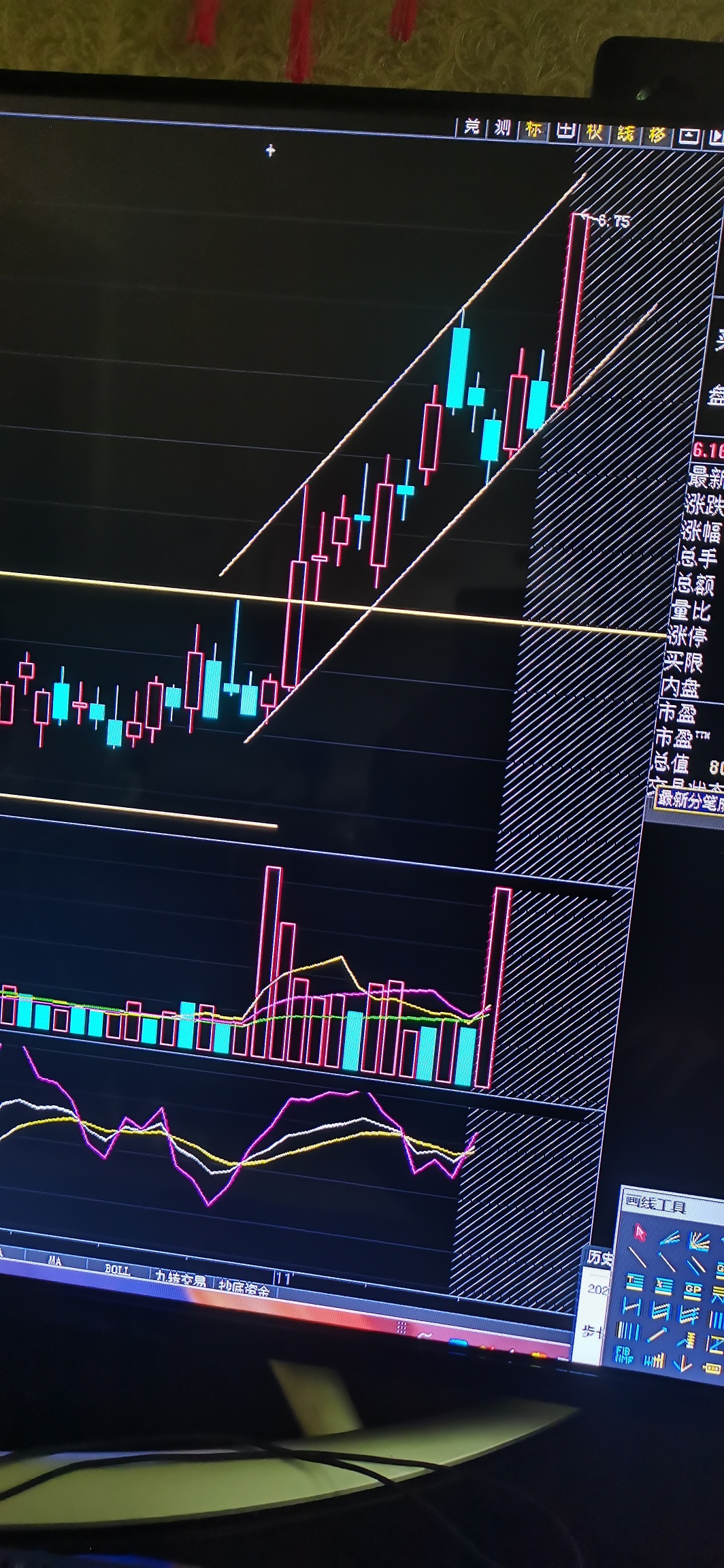 今天被动回调,但趋势还在,下周一必须拉长红突破,不能低开,只能高开,坚持就是胜利