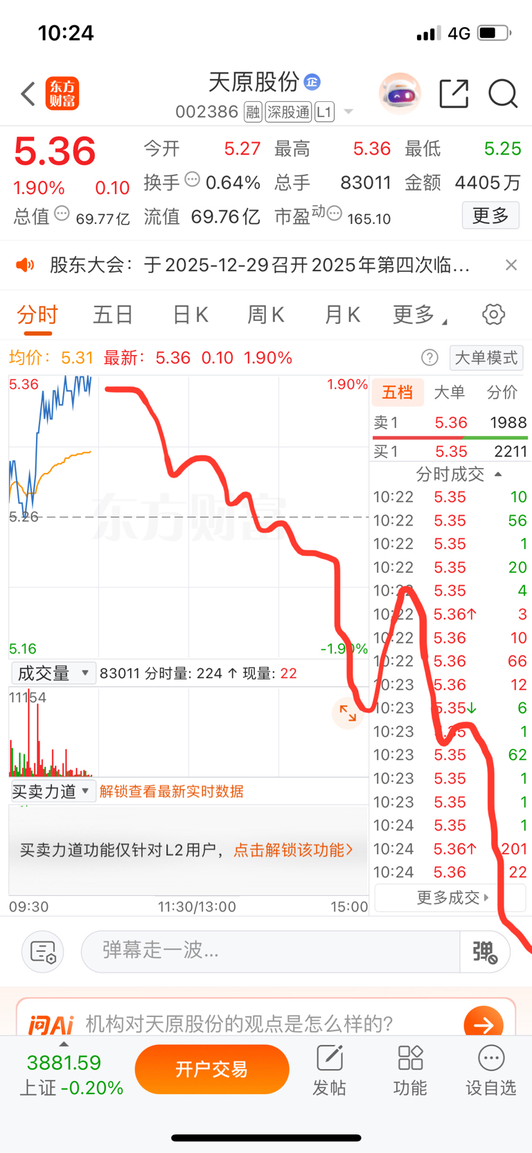 $天原股份(SZ002386)$ 装鸡毛 下来吧你