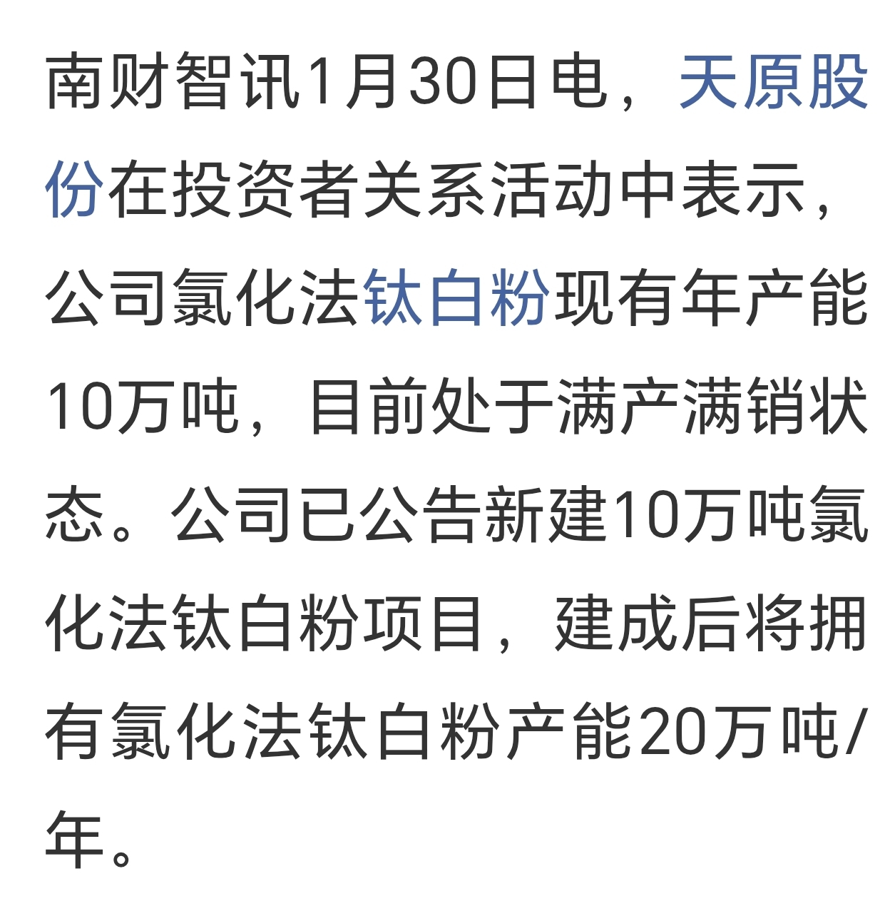 圈重点[满产满销,高负荷运行,订单充足]——天原股份[厂房的热气没有停过]