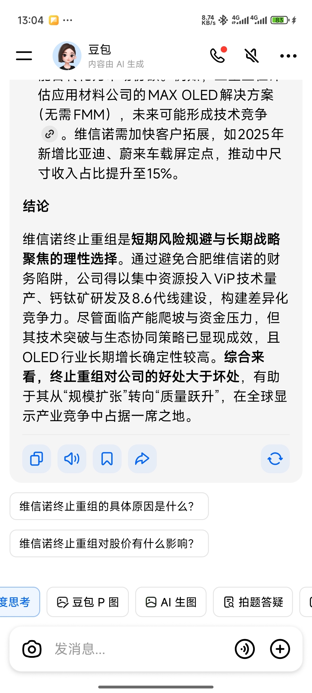 $维信诺(SZ002387)$ 没办法,接受现实吧。结果已经出现,星期一怎么走,也看主力的意愿。小散决定不了股价的多少。生活总要向前。