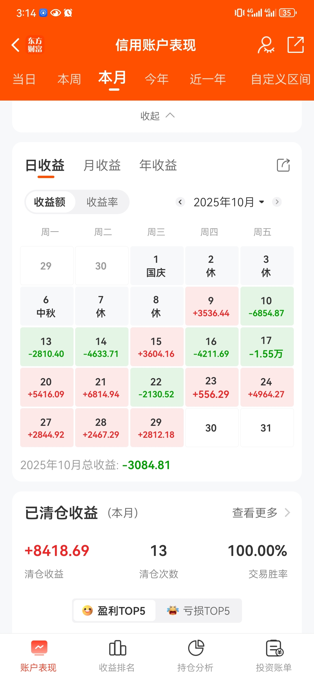 连红五天,本月都没回本。今年真失败,牛市里,题材选错。曾经重仓创业板50,现在全