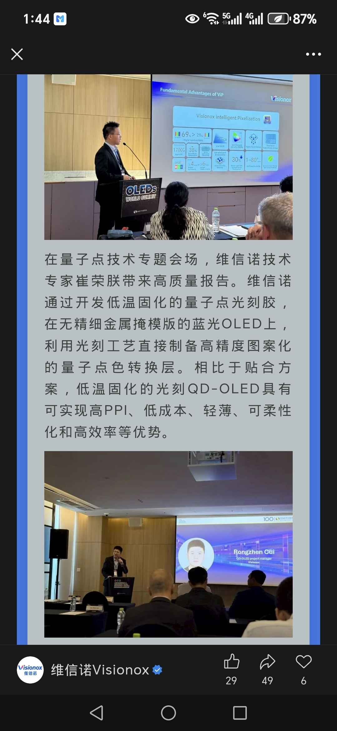 $维信诺(SZ002387)$ 维信诺自主开发的低温光刻胶,vip技术已在六代线印证,投入生产