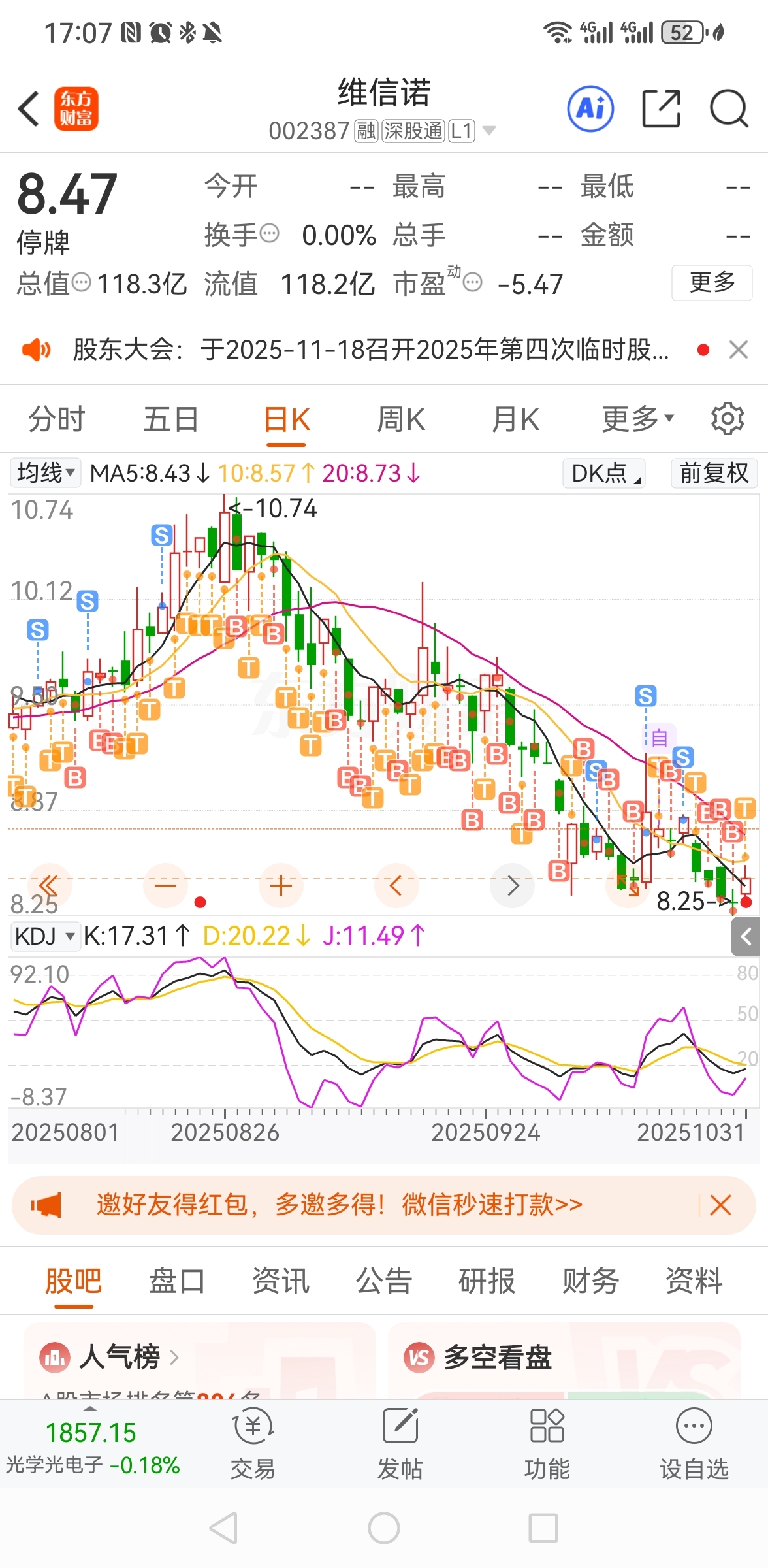 $维信诺(SZ002387)$ 恭喜恭喜你这个仓位有点高我手痒,停牌前一天卖了5000,只有8700股了