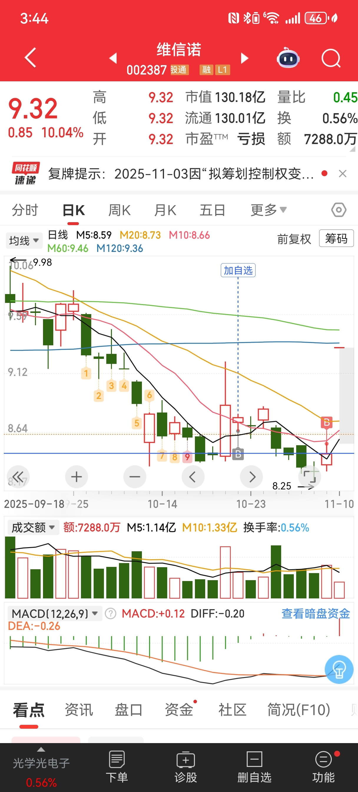 $维信诺(SZ002387)$ 就买了2手,之前亏了1000多