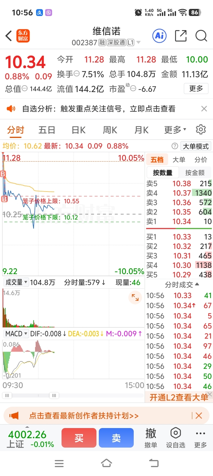 早上开盘买的,亏了10%