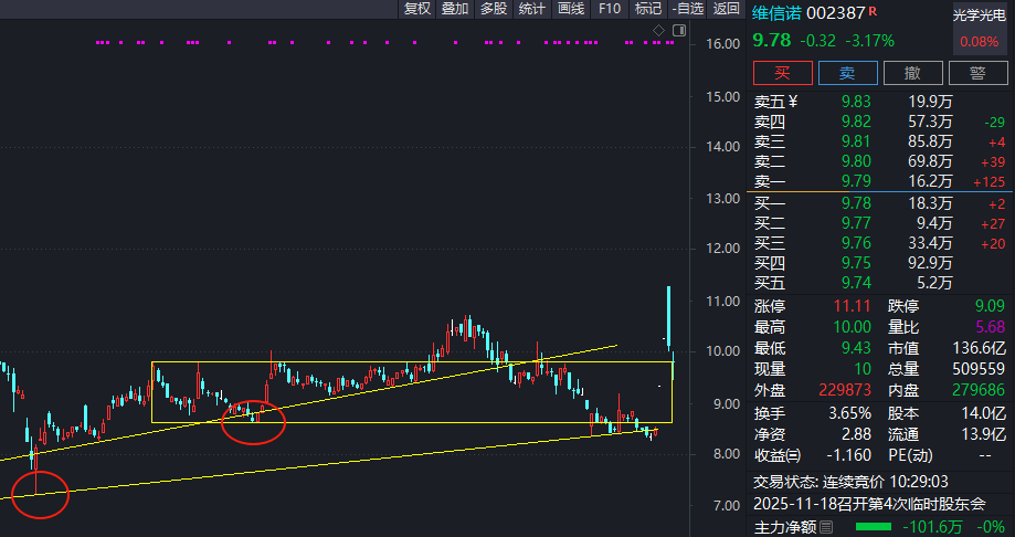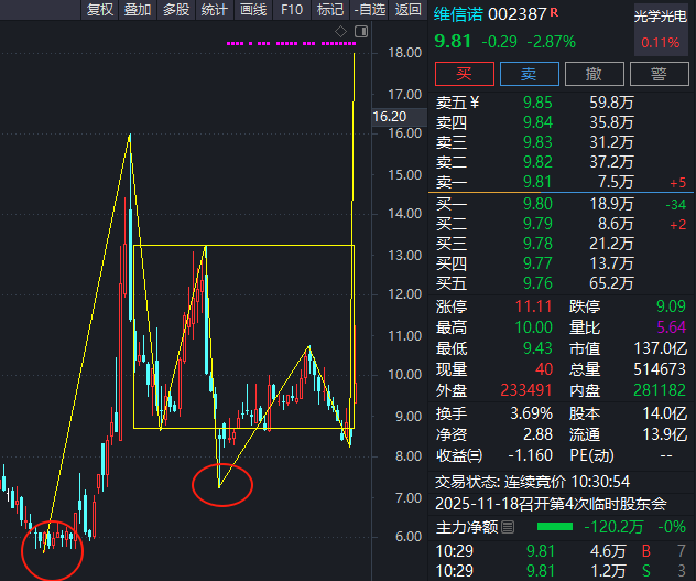 耗时一年多时间,构建的周线中枢,第一买点、第二买点后,正处在反转第三浪中。中枢上沿不久后将出现第三买点。