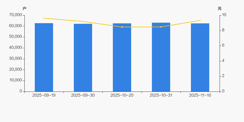 2025年9月19日至今,公司股东户数有所下降,区间跌幅为0.29%。2025年9月19日至2025年11月10日区间股价下降3.02%。