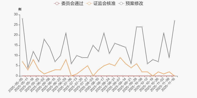 定增项目审核方面,截止11月16日,本周新增0例定增项目获发审委或并购重组委审核通过,0例获证监核准批文,整体审核速度有所放缓。此外,本周27例定增项目预案发生调整。