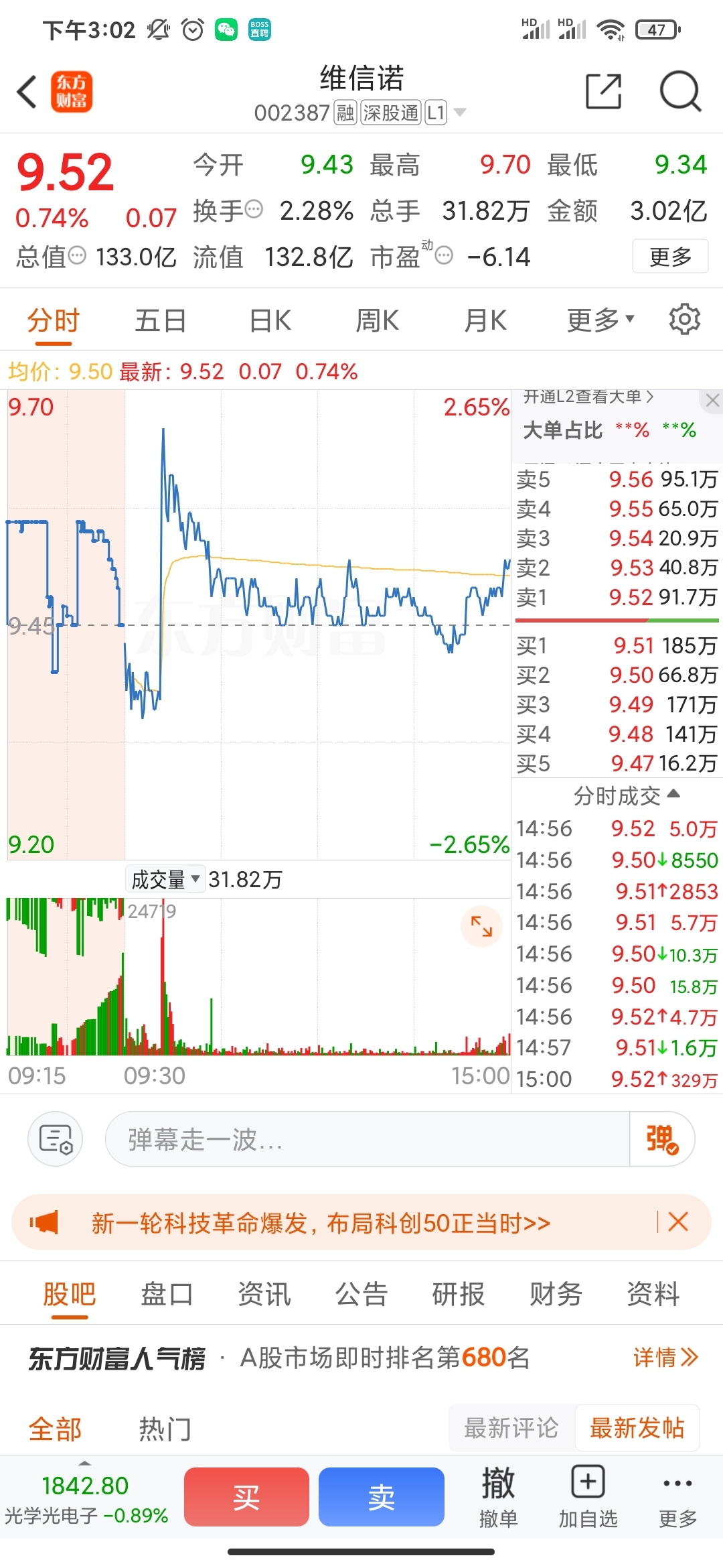 $维信诺(SZ002387)$ 尾盘这么大一手笔不会是杨永兴买的吧