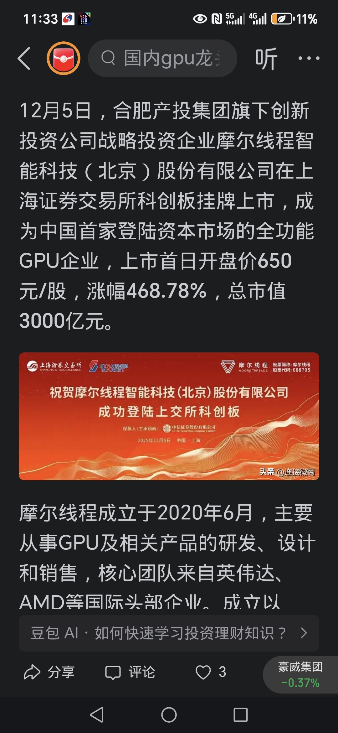 合肥国资真是牛啊。蓝球最佳风投!希望维信诺也能涨一波