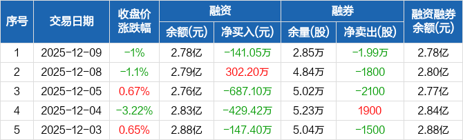 维信诺:融资净偿还141.05万元,融资余额2.78亿元(12-09)