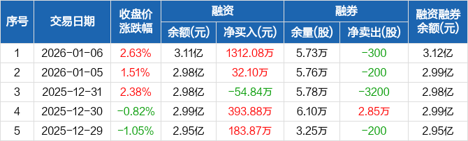 维信诺:融资净买入1312.08万元,融资余额3.11亿元(01-06)