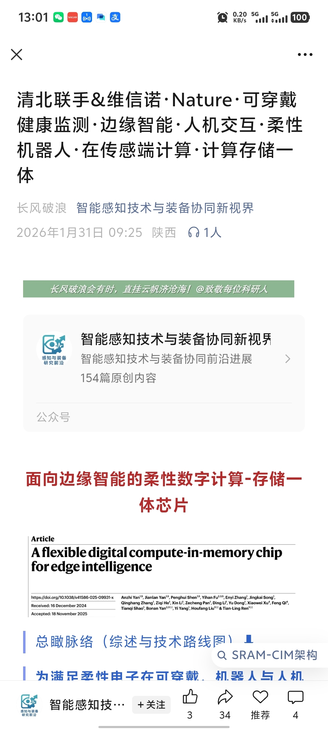 $维信诺(SZ002387)$ 清北联手&维信诺·Nature·可穿戴健康监测·边缘智能·人机交互·柔性机器人·在传感端计算·计算存储一体,小股东各种找利好,就是不涨