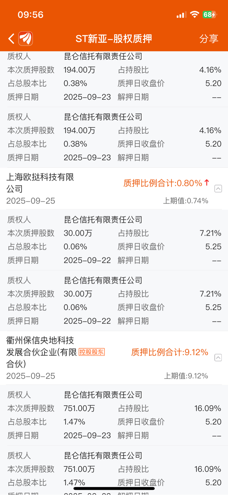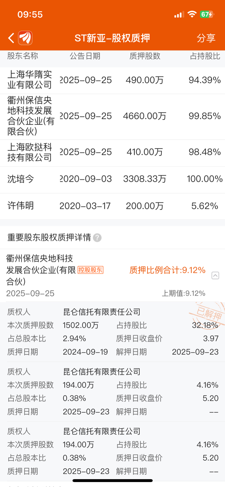 $ST新亚(SZ002388)$ 还有散户进?头真铁,之前没有研究股东质押,越跌越补仓昨天亏1万多跑了,凯文摘帽继续在跌,这个新亚主力天天都在出货,一路阴跌,股东质押99%,5.2就要平仓,散户跑不赢的,没有进来的散户别买,多研究看看,这个票T都做不了