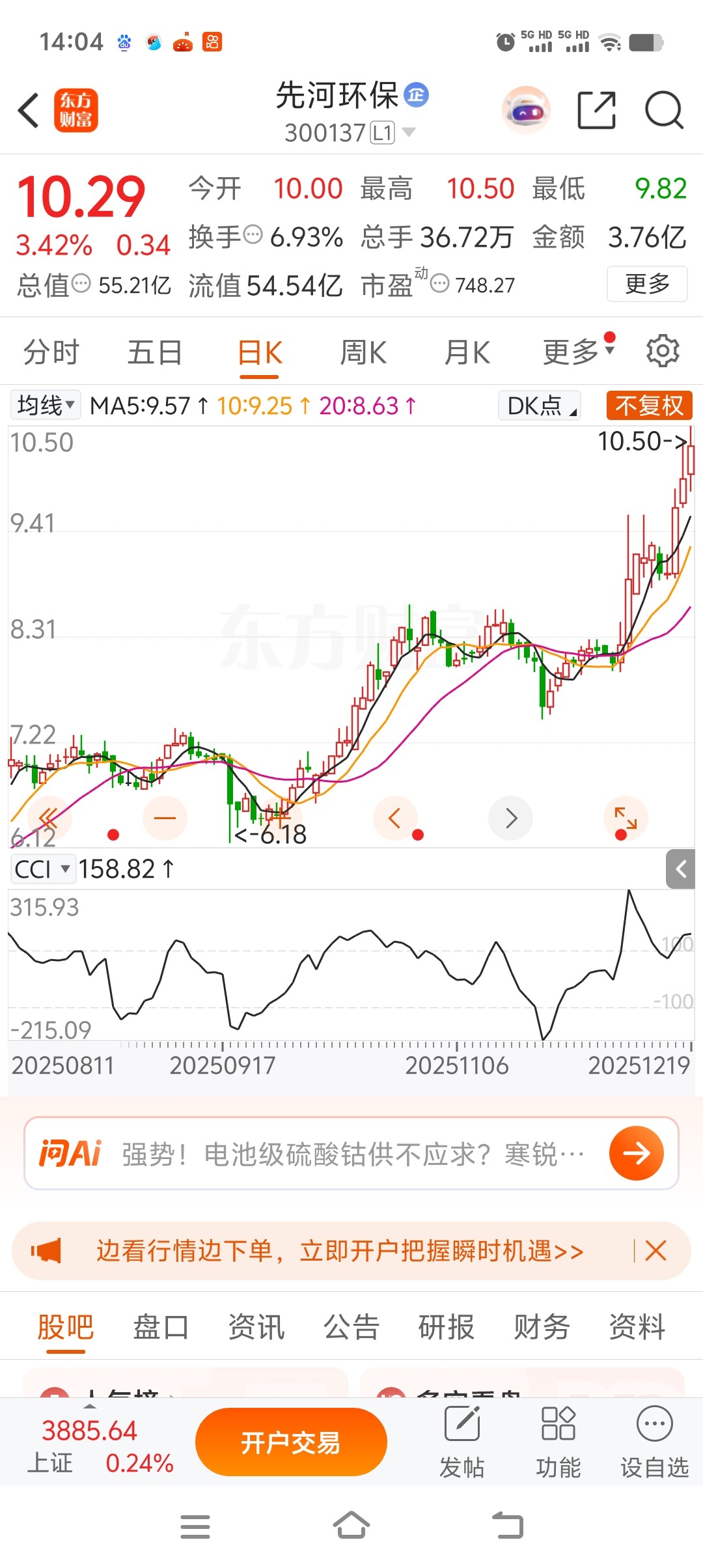 先河摘帽涨到10元过了、50几市值了、拿好手上的筹码、没几天可熬了