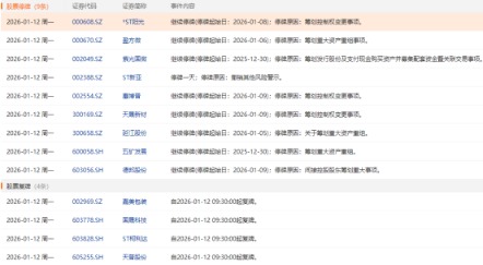 1月12日盘前停复牌汇总