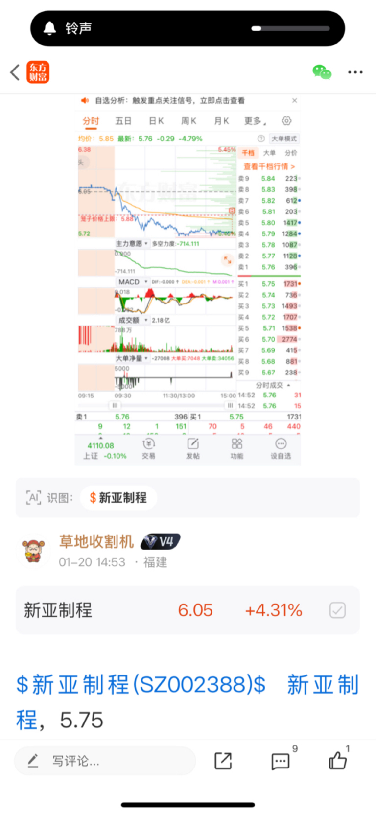$新亚制程(SZ002388)$ 20号5.75进来的,能吃10个点吗?继续洗洗