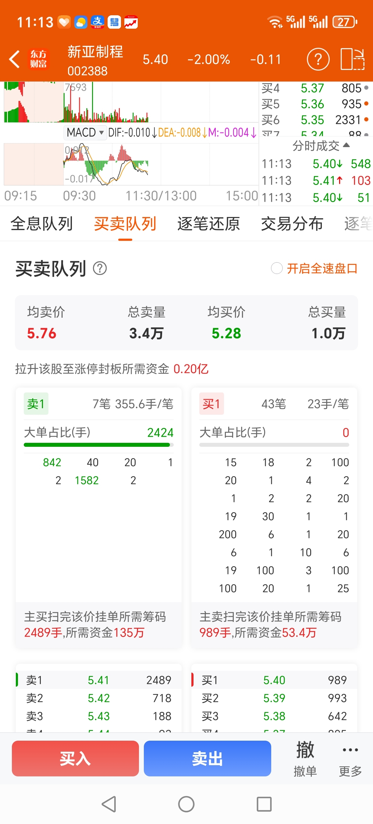 $新亚制程(SZ002388)$ 买卖单都少了