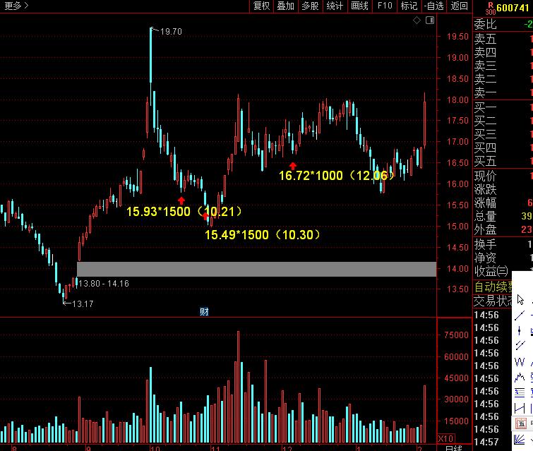 华域有二笔是10月底买的。平均15块7左右价格。第三笔是12月6号买的。