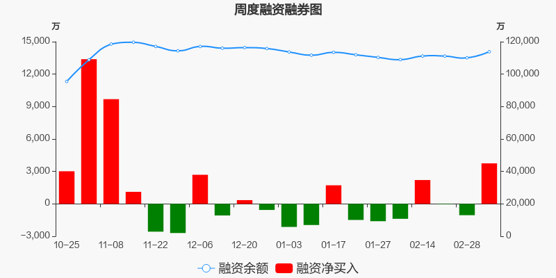 航天彩虹本周(2025/03/03-2025/03/07)累计涨幅达18.23%,截至3月7日最新股价报收21.40元。从增量上来看,3月3日至3月6日融资买入交易规模3.63亿元,融资偿还规模3.26亿元,期内融资净买入3746.66万元。从存量上来看,截止3月9日,航天彩虹融资融券余额11.43亿元,其中融资余额规模11.38亿元,融券余额规模513.48万元。