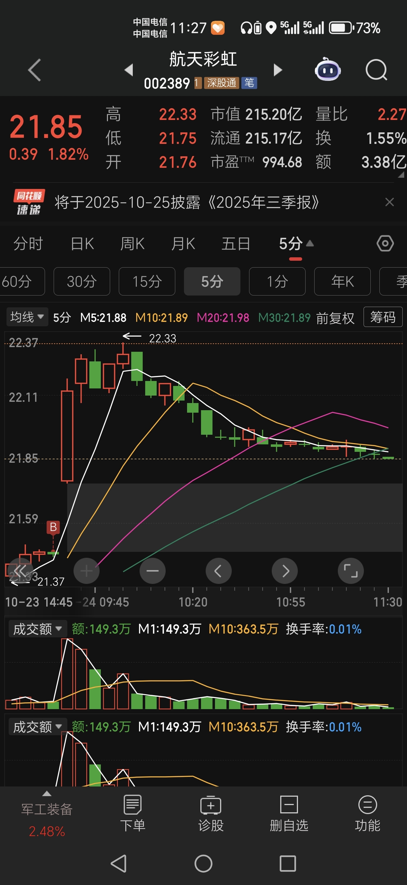 $航天彩虹(SZ002389)$ 一步一步越来越低