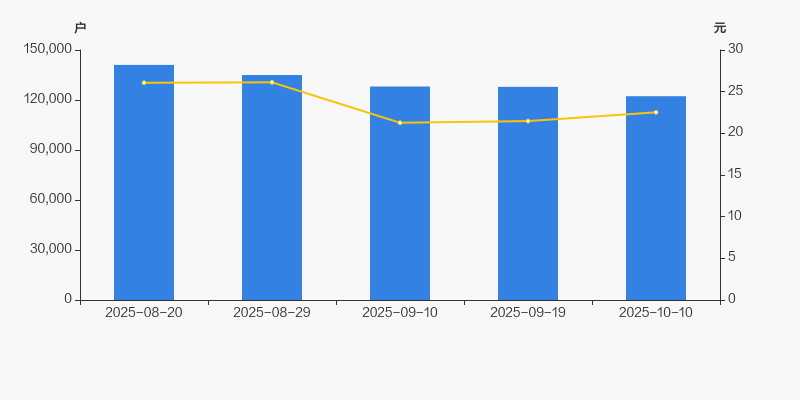 自2025年8月20日以来,公司股东户数连续4期下降,截至目前减幅为13.32%。2025年8月20日至2025年10月10日区间股价下降13.62%。