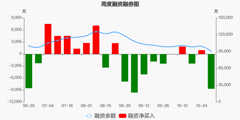 航天彩虹本周(2025/10/27-2025/10/31)累计涨幅达0.18%,截至10月31日最新股价报收21.91元。从增量上来看,10月27日至10月30日融资买入交易规模1.92亿元,融资偿还规模2.79亿元,期内融资净偿还8690.93万元。从存量上来看,截止11月2日,航天彩虹融资融券余额9.08亿元,其中融资余额规模9.06亿元,融券余额规模143.75万元。