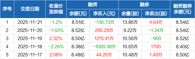 航天彩虹:融资净偿还136.73万元,融资余额8.51亿元(11-21)