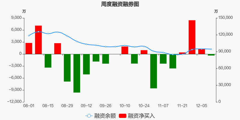 航天彩虹本周(2025/12/08-2025/12/12)累计涨幅达2.2%,截至12月12日最新股价报收22.76元。从增量上来看,12月8日至12月11日融资买入交易规模3.37亿元,融资偿还规模3.41亿元,期内融资净偿还378.63万元。从存量上来看,截止12月14日,航天彩虹融资融券余额9.49亿元,其中融资余额规模9.44亿元,融券余额规模510.06万元。