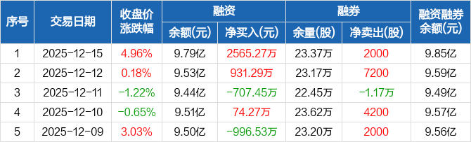 航天彩虹:融资净买入2565.27万元,融资余额9.79亿元(12-15)