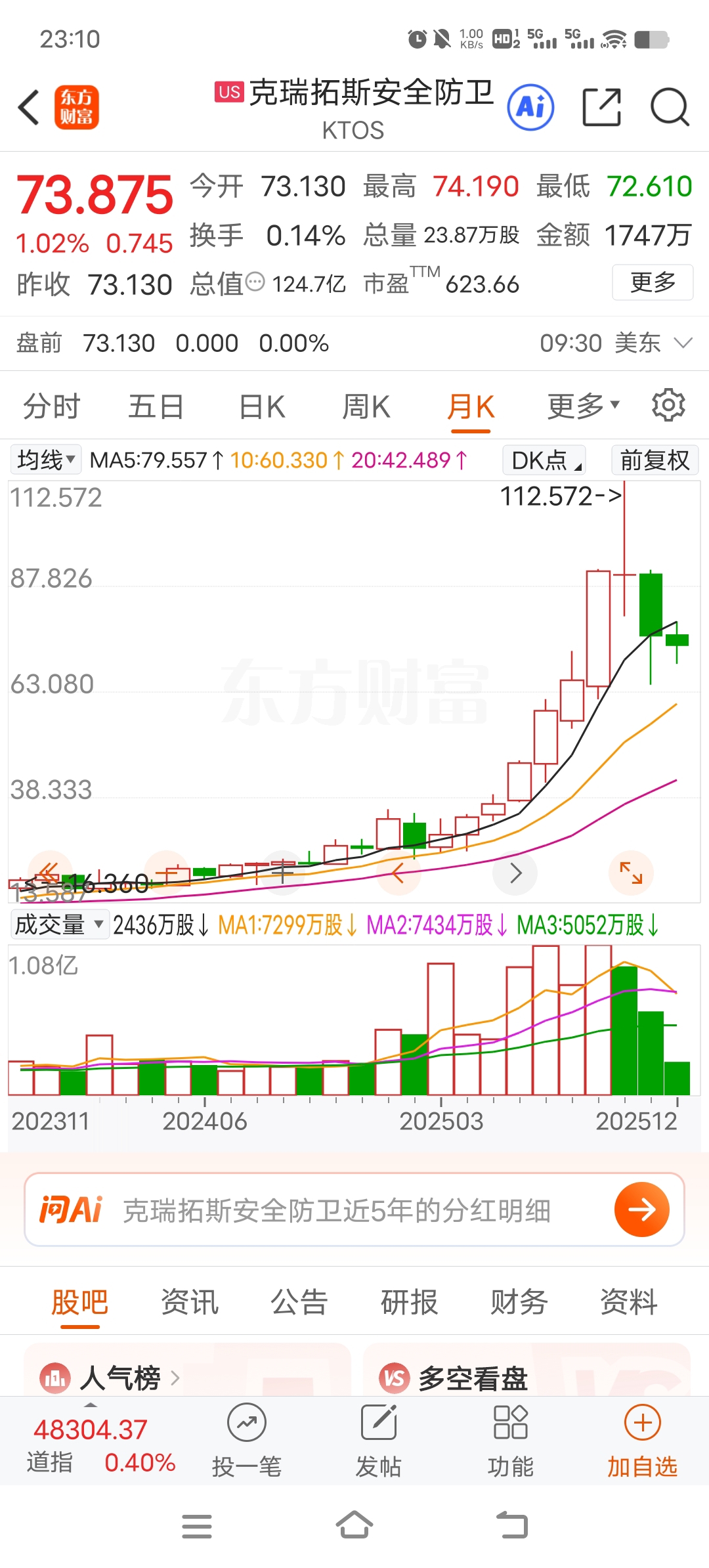 XQ-58A无人机研发出来后,KTOS半年涨4倍。实力更强的彩虹7能让你涨几倍?