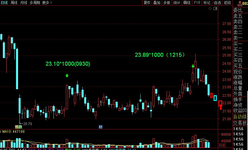 低点我猜22块5 ( 实际上昨天也下来22块4附近)