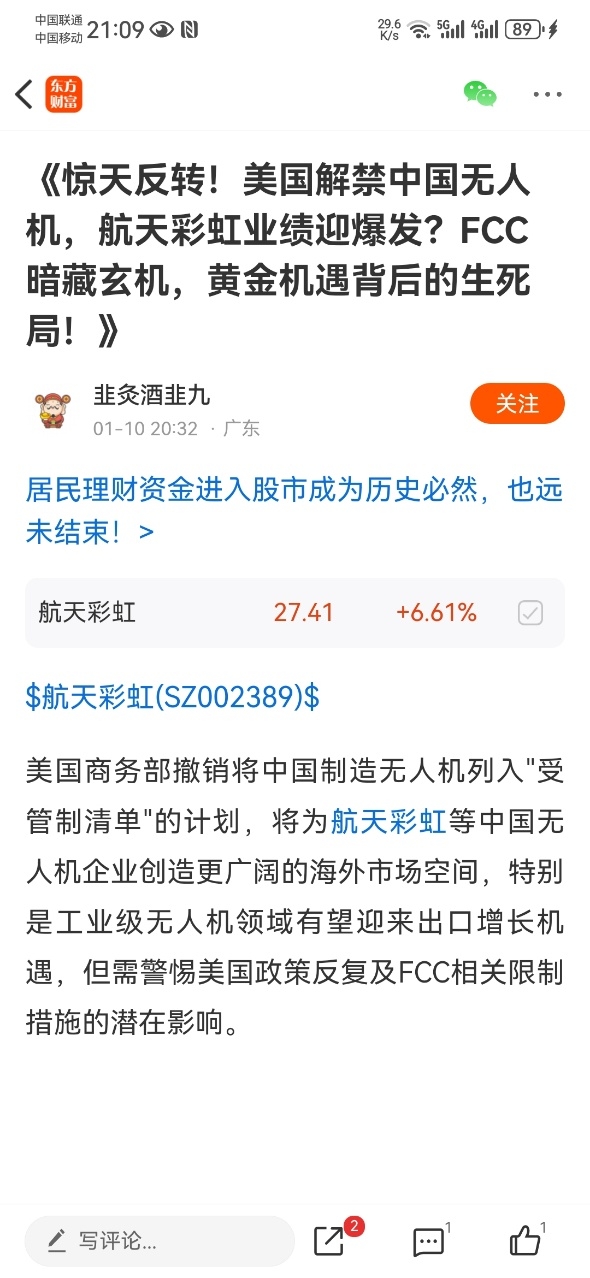 $航天彩虹(SZ002389)$