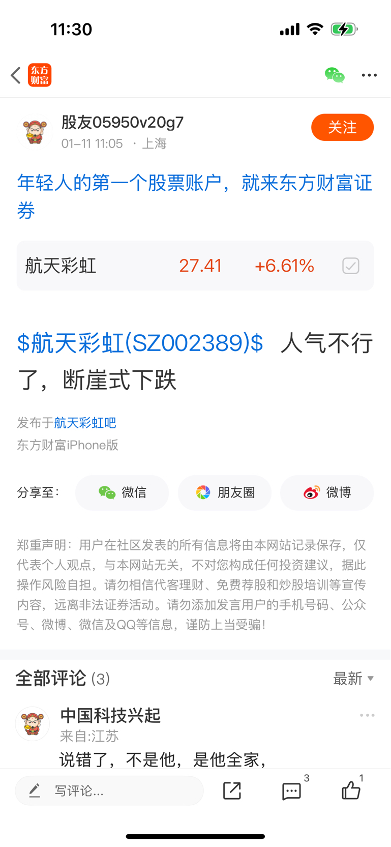 温馨提示: 1.根据《证券法》规定,禁止编造、传播虚假信息或者误导性信息,扰乱证券市场;2.用户在本社区发表的所有资料、言论等仅代表个人观点,与本网站立场无关,不对您构成任何投资建议。用户应基于自己的独立判断,自行决定证券投资并承担相应风险。《东方财富社区管理规定》