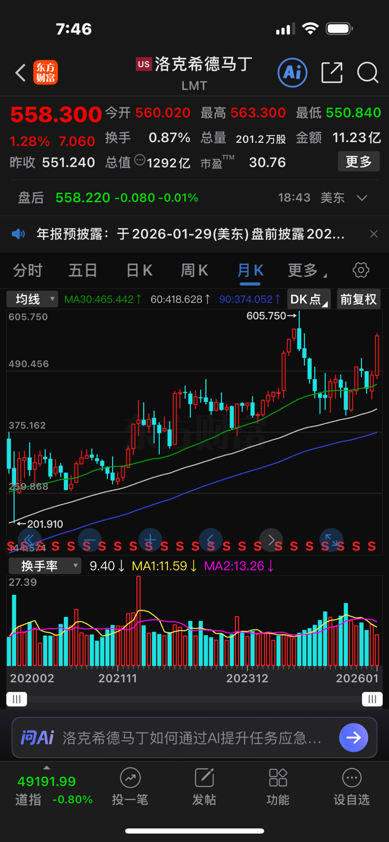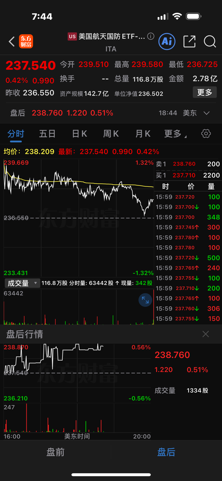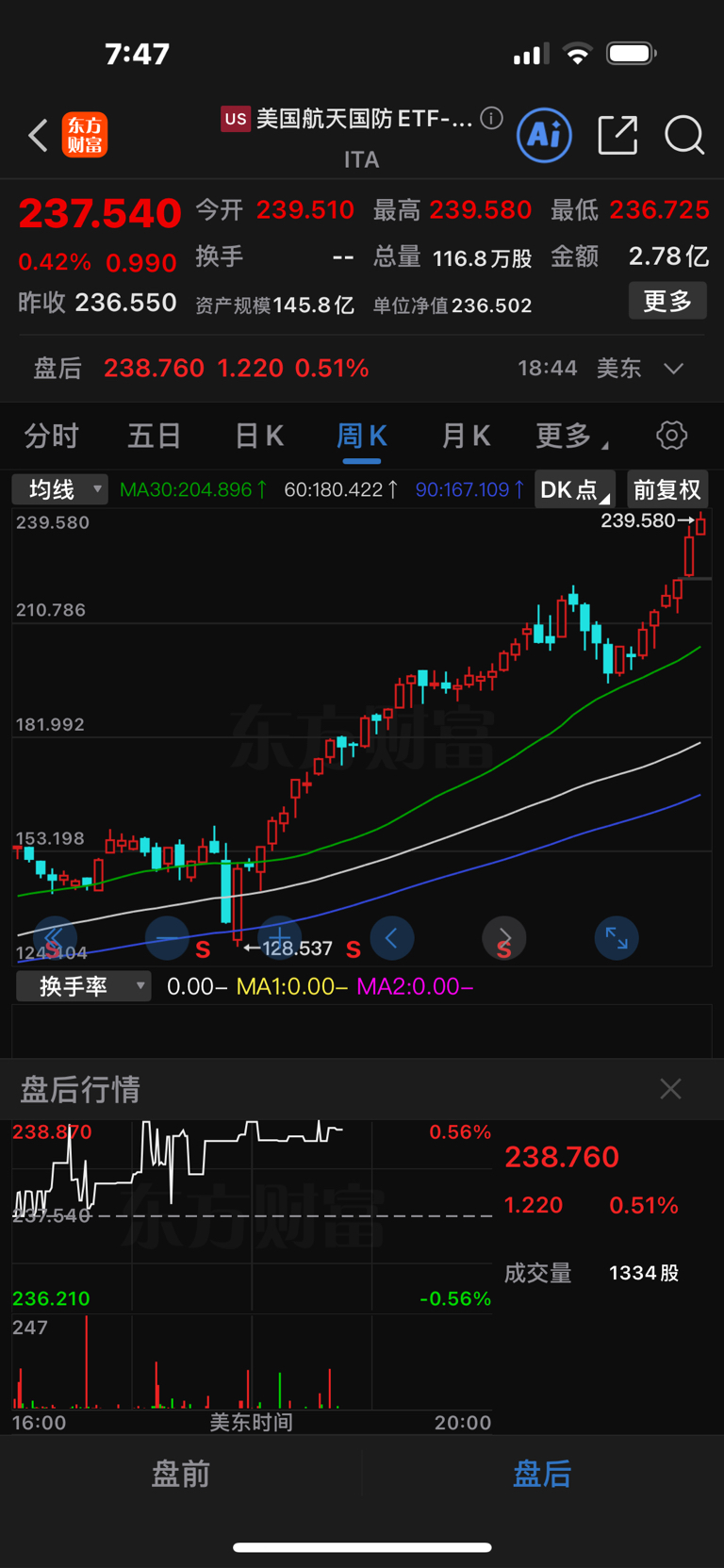 美股隔夜航天国防ETF指数收盘上涨0.42%,盘后上涨0.51%,洛克希德马丁收