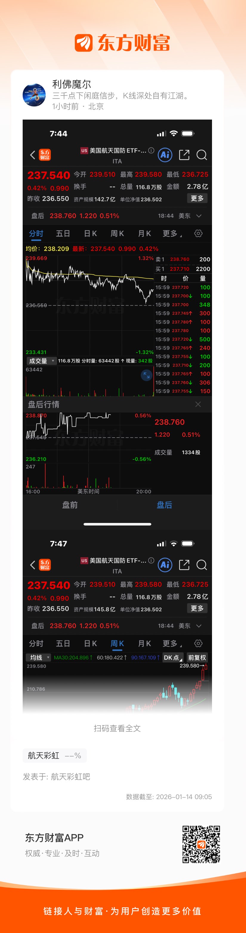 $航天彩虹(SZ002389)$ 美股隔夜航天国防ETF指数收盘上涨0.42%,盘后上涨0.51%,洛克希德马丁收盘上涨1.28%。美股航天军工板块红旗不倒,继续上涨,预判今天航天军工板块早盘有积压的风险的个股,释放后企稳,盘面无积压风险的个股,开盘后即上涨