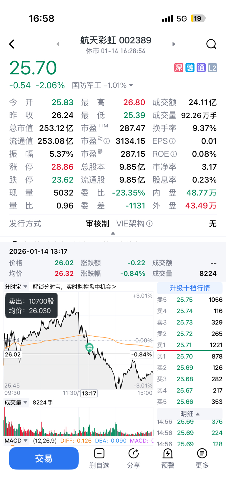 $航天彩虹(SZ002389)$ 最高18个点没跑,今天实在熬不住了清仓走人,留下的兄弟发大财!