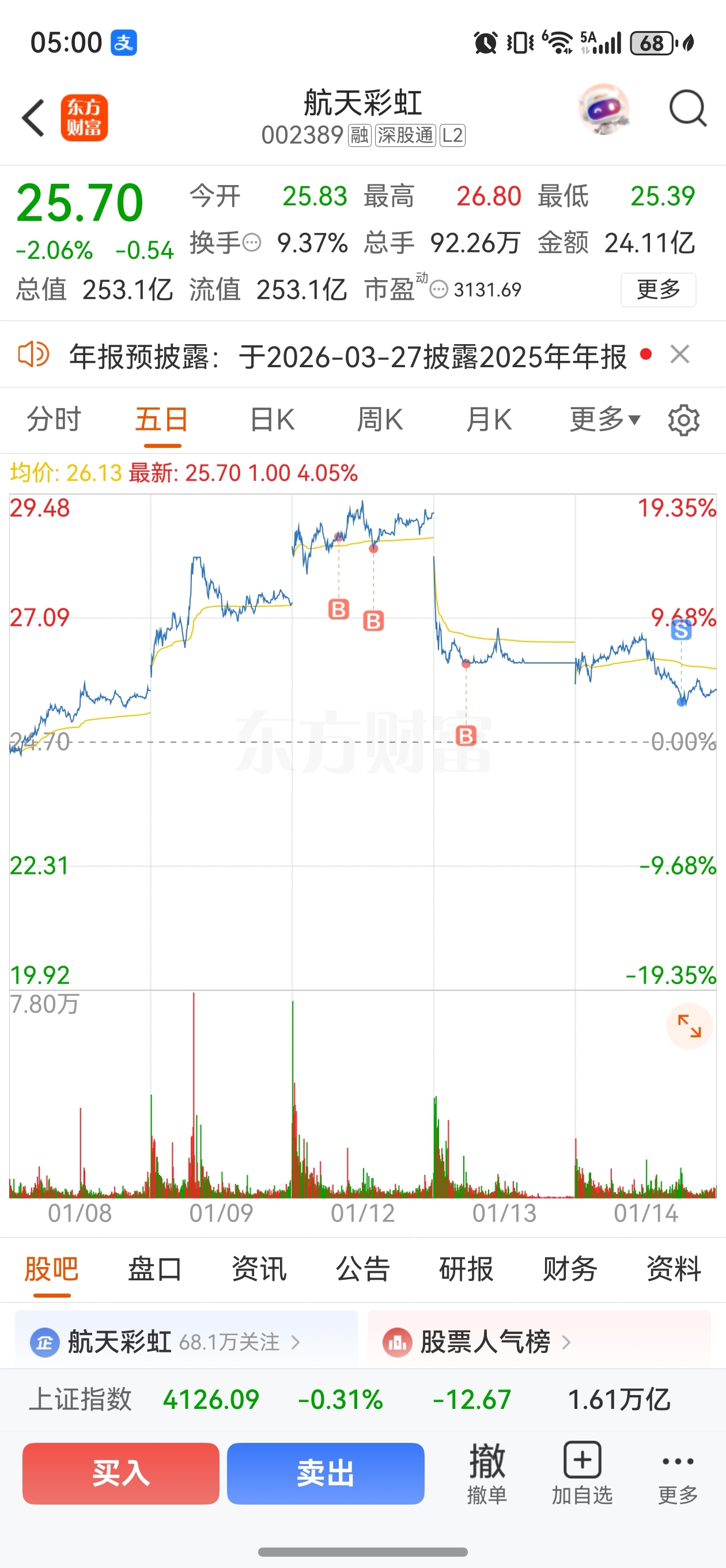 $航天彩虹(SZ002389)$ 这是一个杂毛股,没进别被骗了,在里面的发财,受不了割了