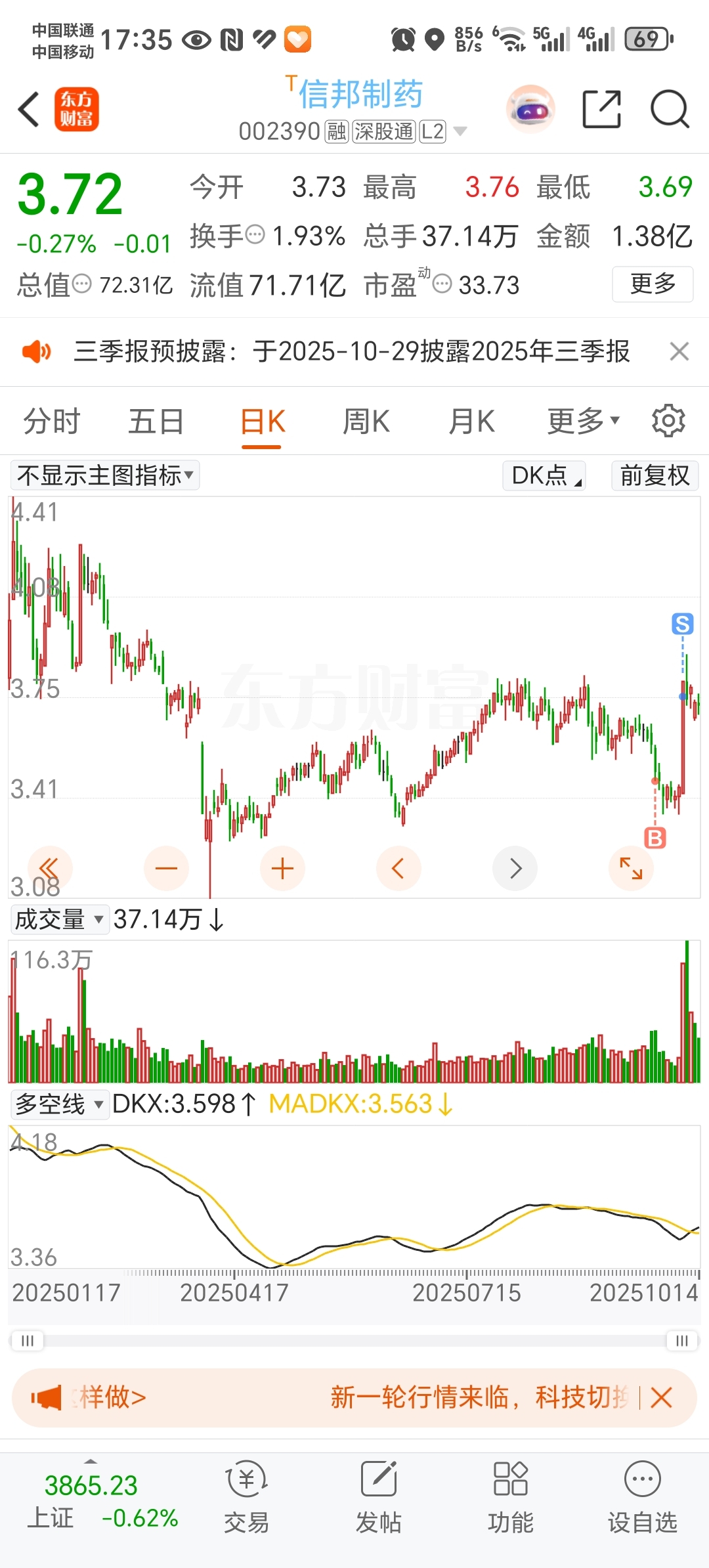 $信邦制药(SZ002390)$ 准备3.4-3.55之间接回来,希望给个机会吧