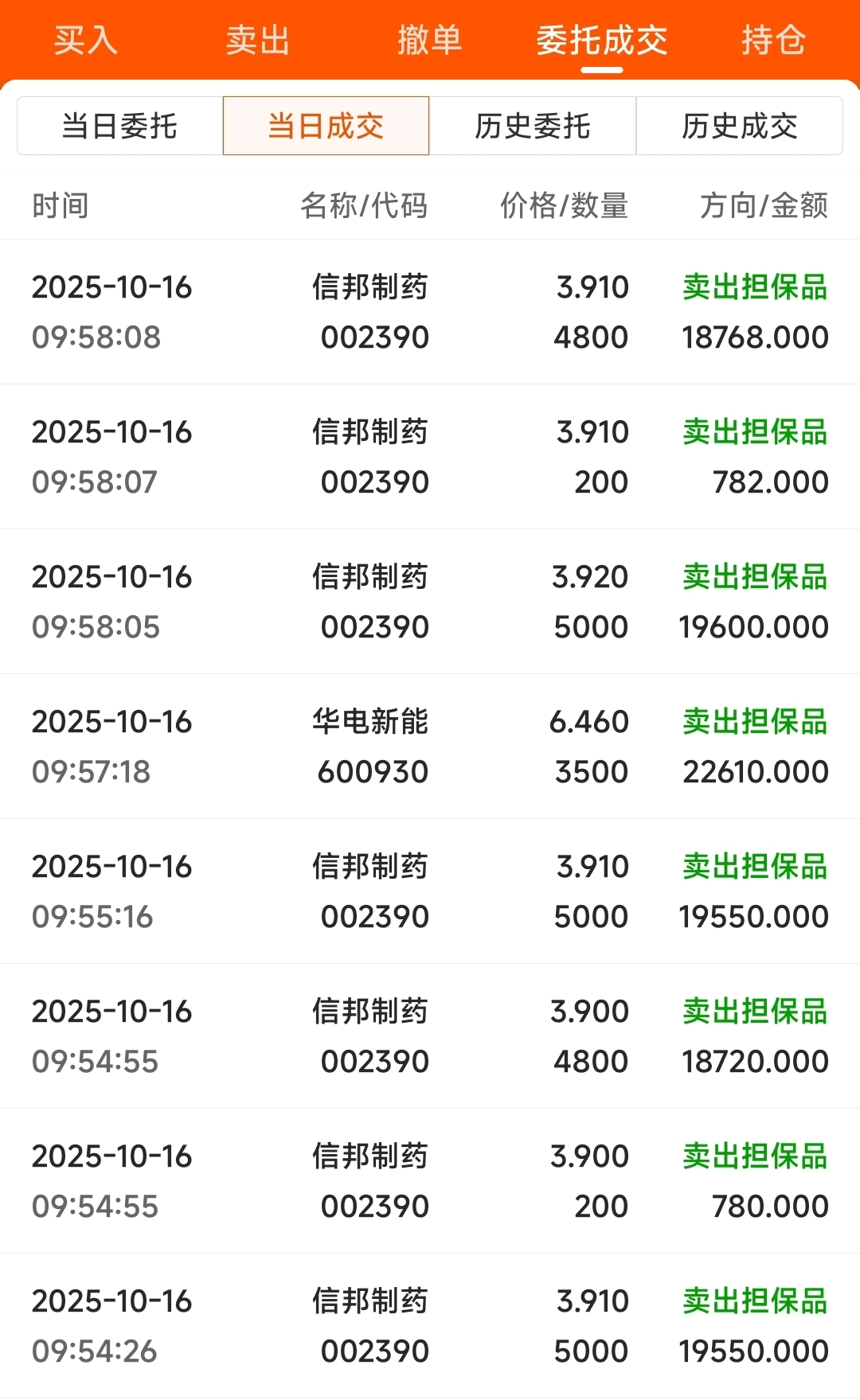 $信邦制药(SZ002390)$ 10/9高点没抛有点后悔,今天还好在3.91全部获利了结!!!