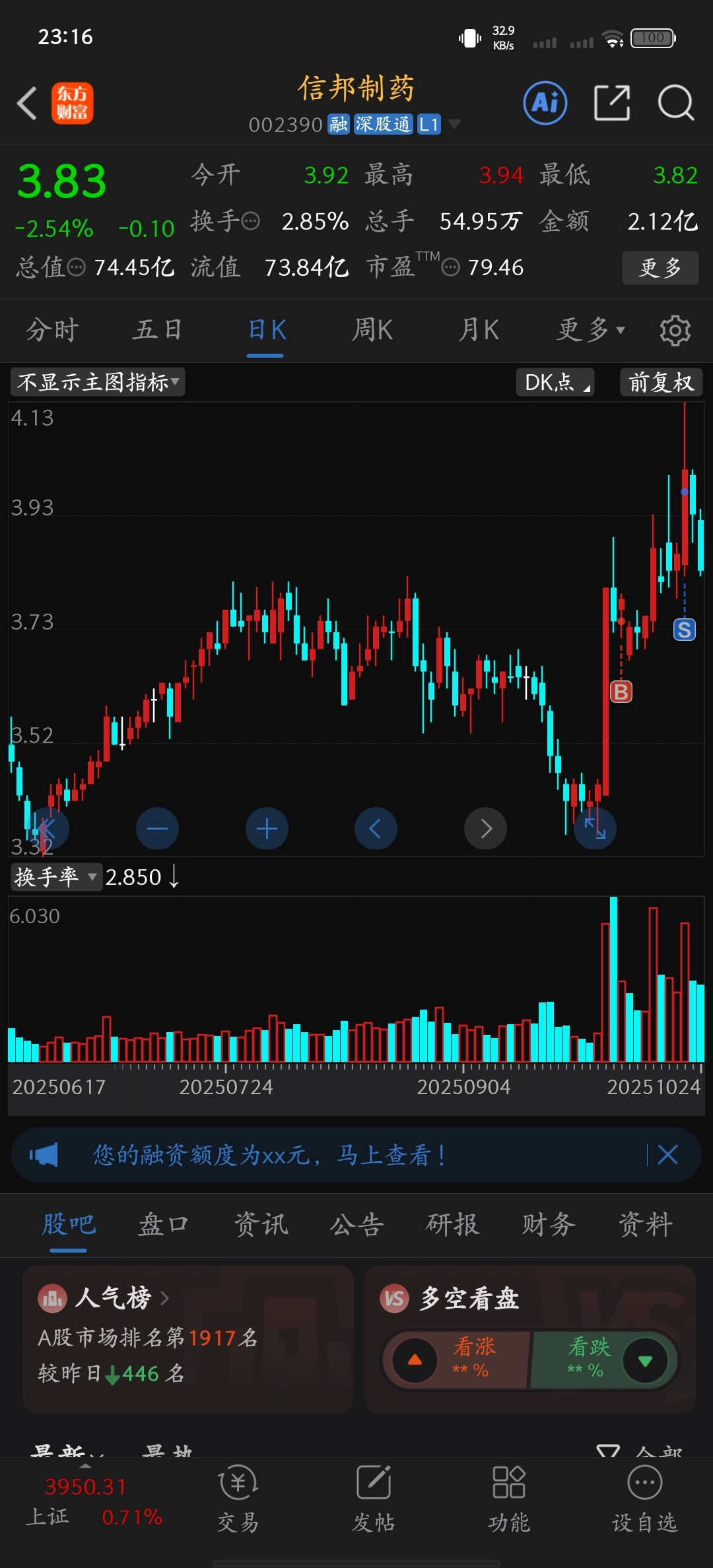 $信邦制药(SZ002390)$ 这股走得是真弱,等了大几天连个涨停都没有