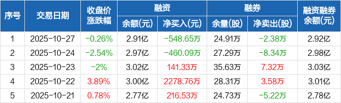 信邦制药:融资净偿还548.65万元,融资余额2.91亿元(10-27)