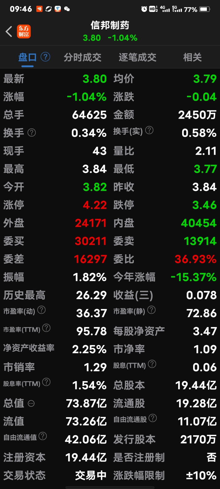 $信邦制药(SZ002390)$ 这样的公司还有唾前途?内资每天都在疯狂出货做空